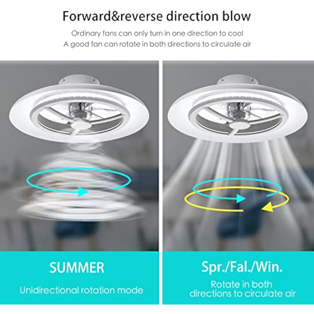 ✨ EVERY SEASONS REFRESHING - This led ceiling fan can rotate in both directions, speed up indoor air circulation. Different seasons, different temperature, keep the indoor air unobstructed and fresh. At the same time, it can also speed up the use efficiency of air conditioners.