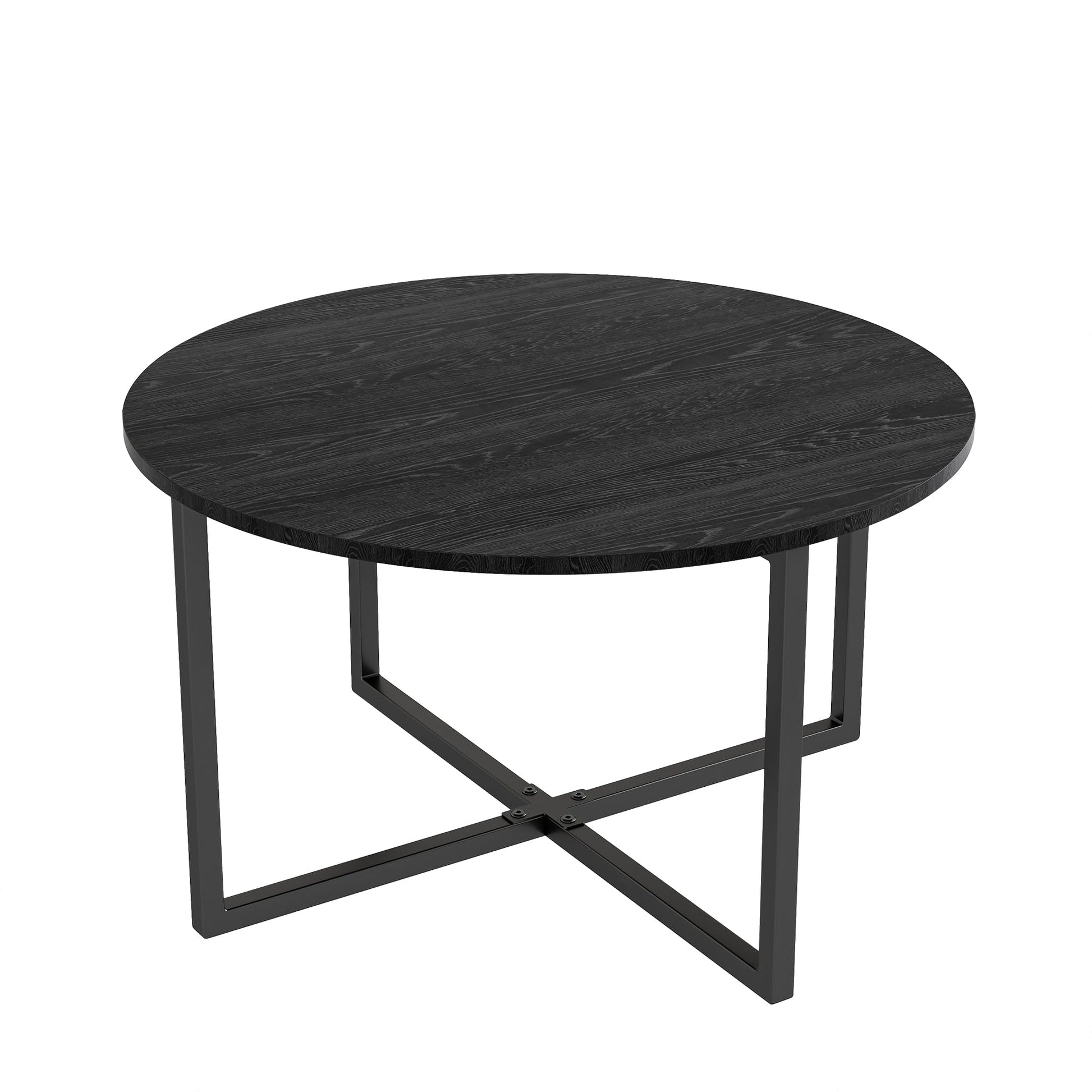 BOFENG Round Coffee Table Tea Table End Table Sofa Table for Living Room with Metal Legs,Black+Black