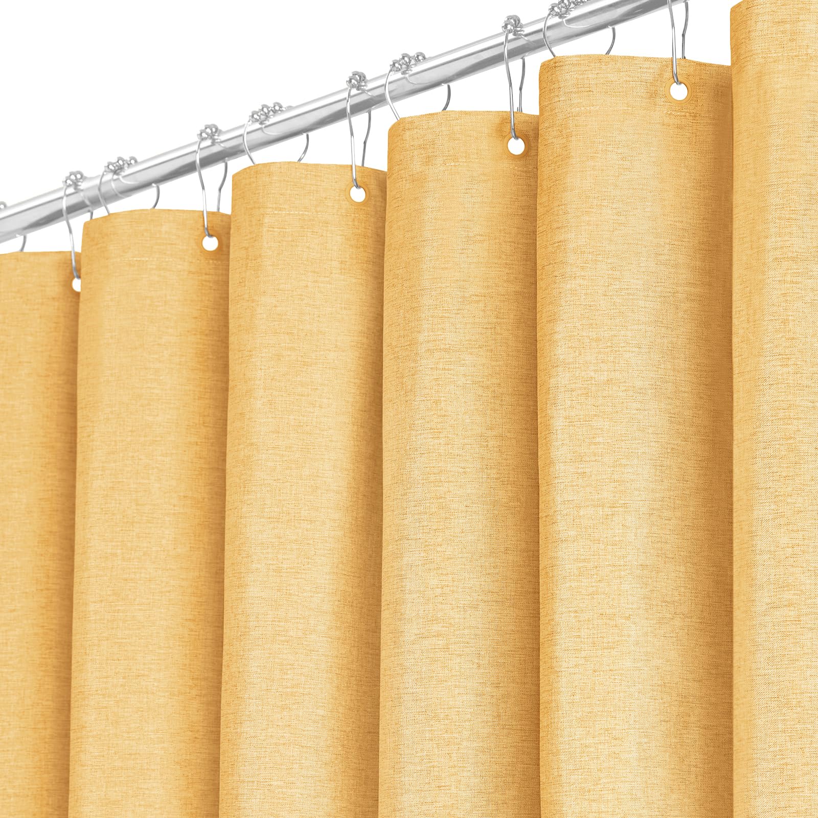 BTTN Gold Linen Shower Curtain, Modern Mildew Resistant Textured Fabric, Waterproof Polyester for Wet Bathroom, Weighted Hem, Durable and Washable,