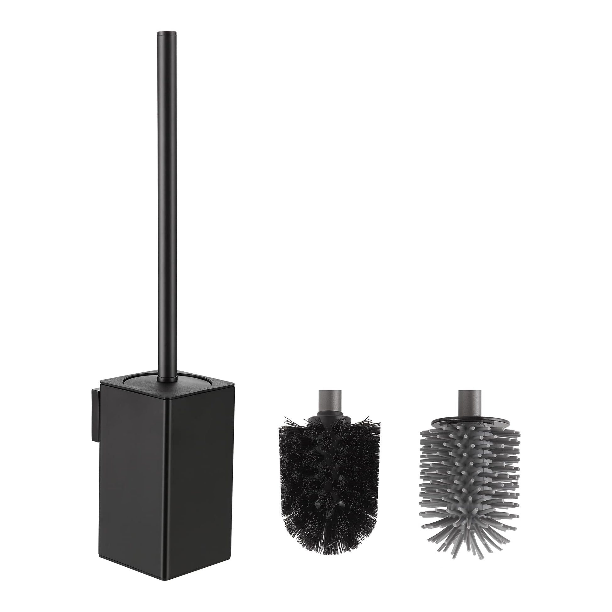 BVL Toilet Brush Black Toilet Brush Wall Mounted Toilet Brush Silicone Wall Unique Square Design Includes 2 Brush Heads