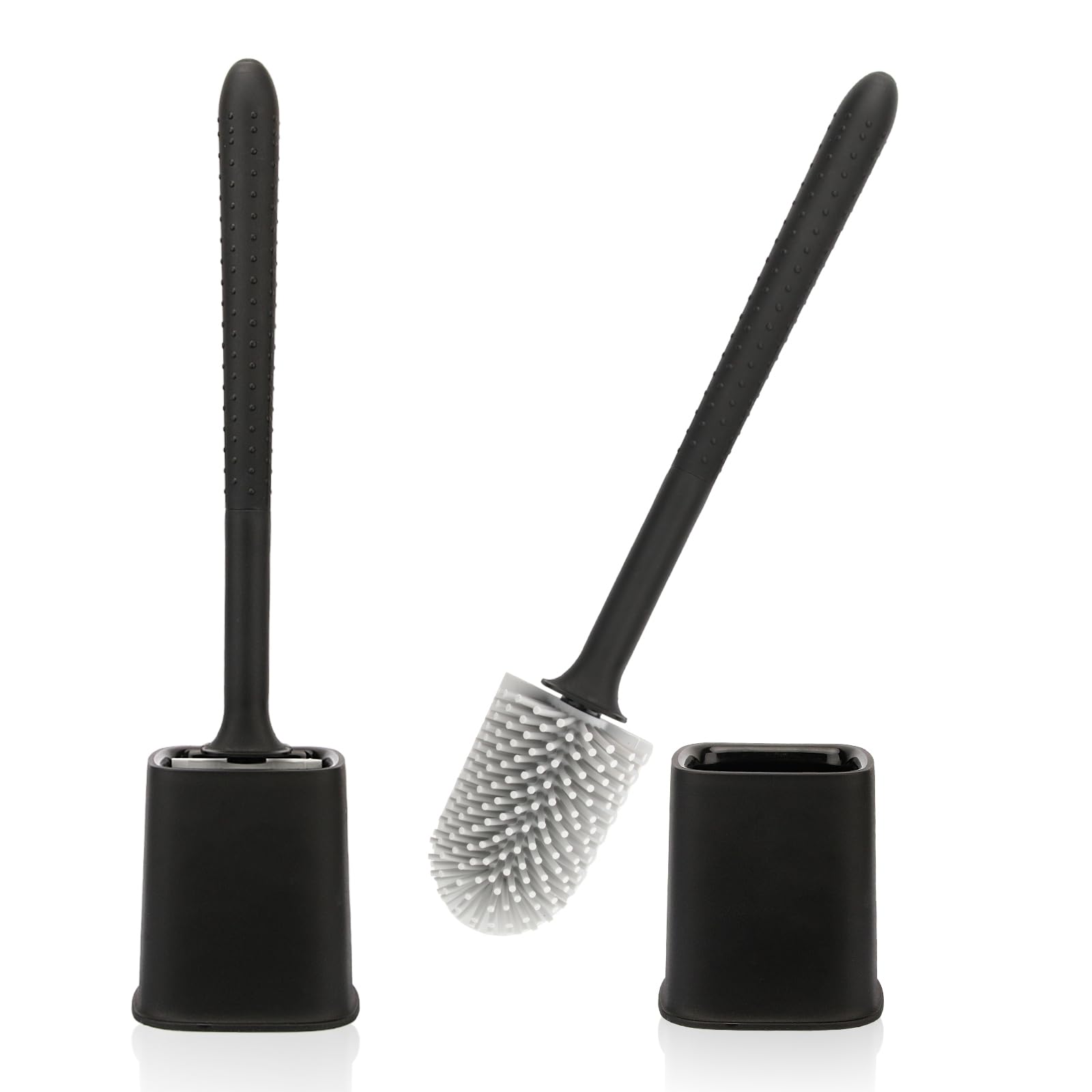 Canvint Silicone Toilet Brush Set, 2 Pack Deep Cleaning Brush with Quick Drying Holder, Flexible Long Handle (Black)