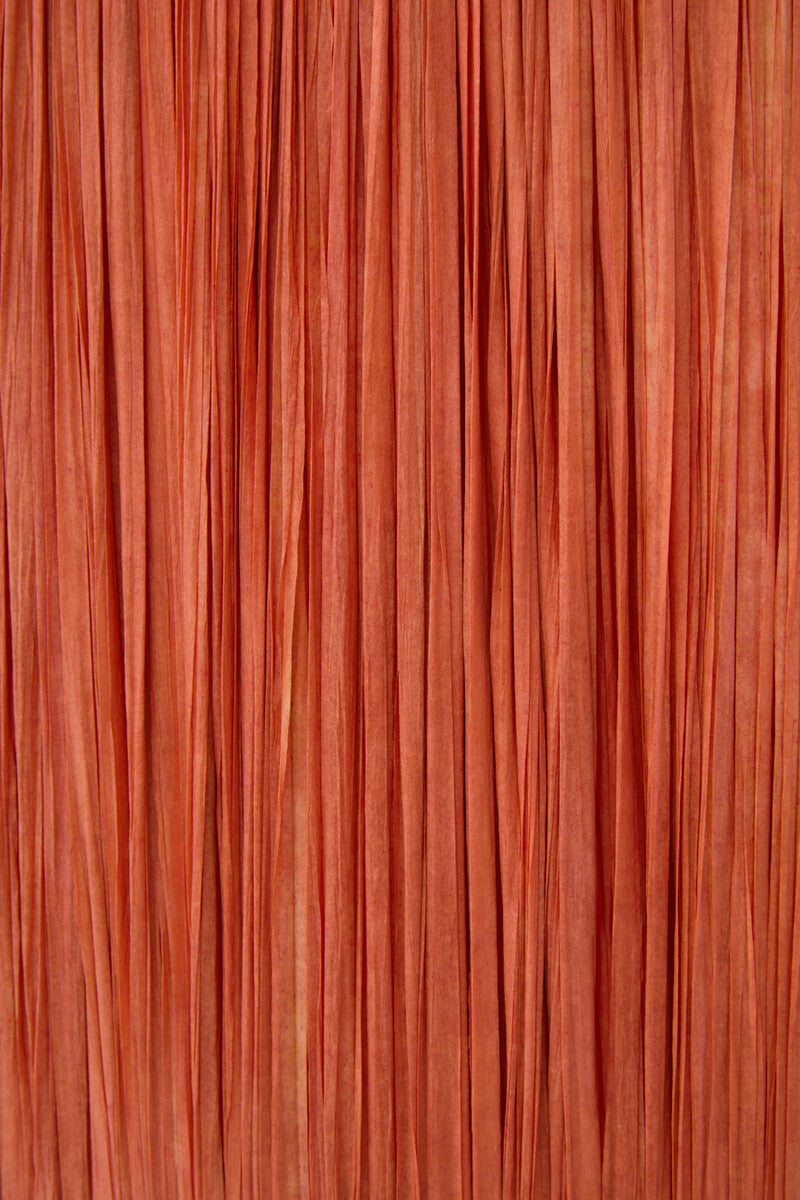 The papier-mâché base has a gently pebbled finish that plays well with matte walls and soft textiles. A rust raffia drum shade adds depth and a touch of colour, producing a warm pool of light that flatters evening settings.