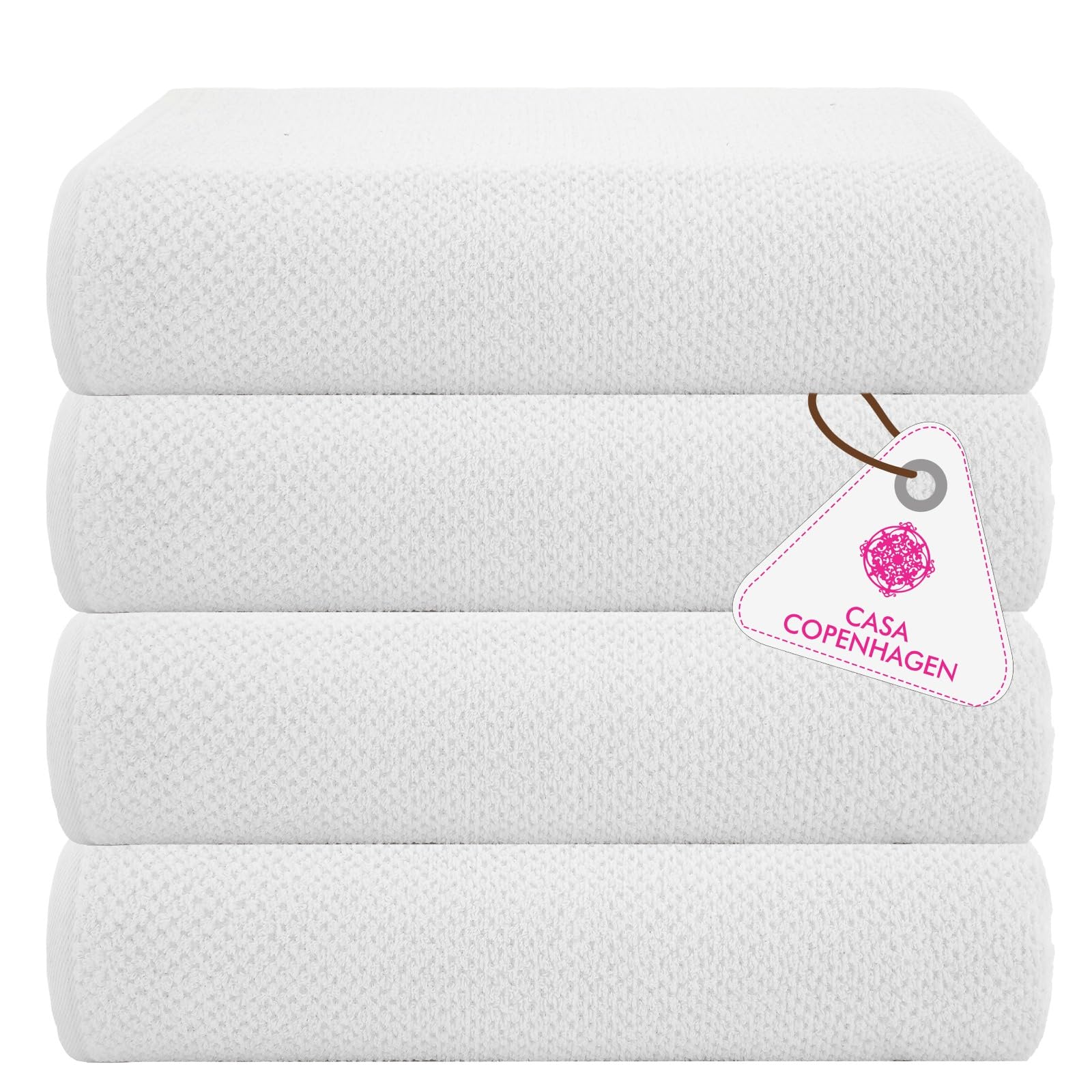 CASA COPENHAGEN Popcorn Textured 4 Piece Bath Towel Set - White, 550 g/m², 4 Piece Bath Towels, Cotton Towels Rough and Tough Use, Gift Set for Bathroom