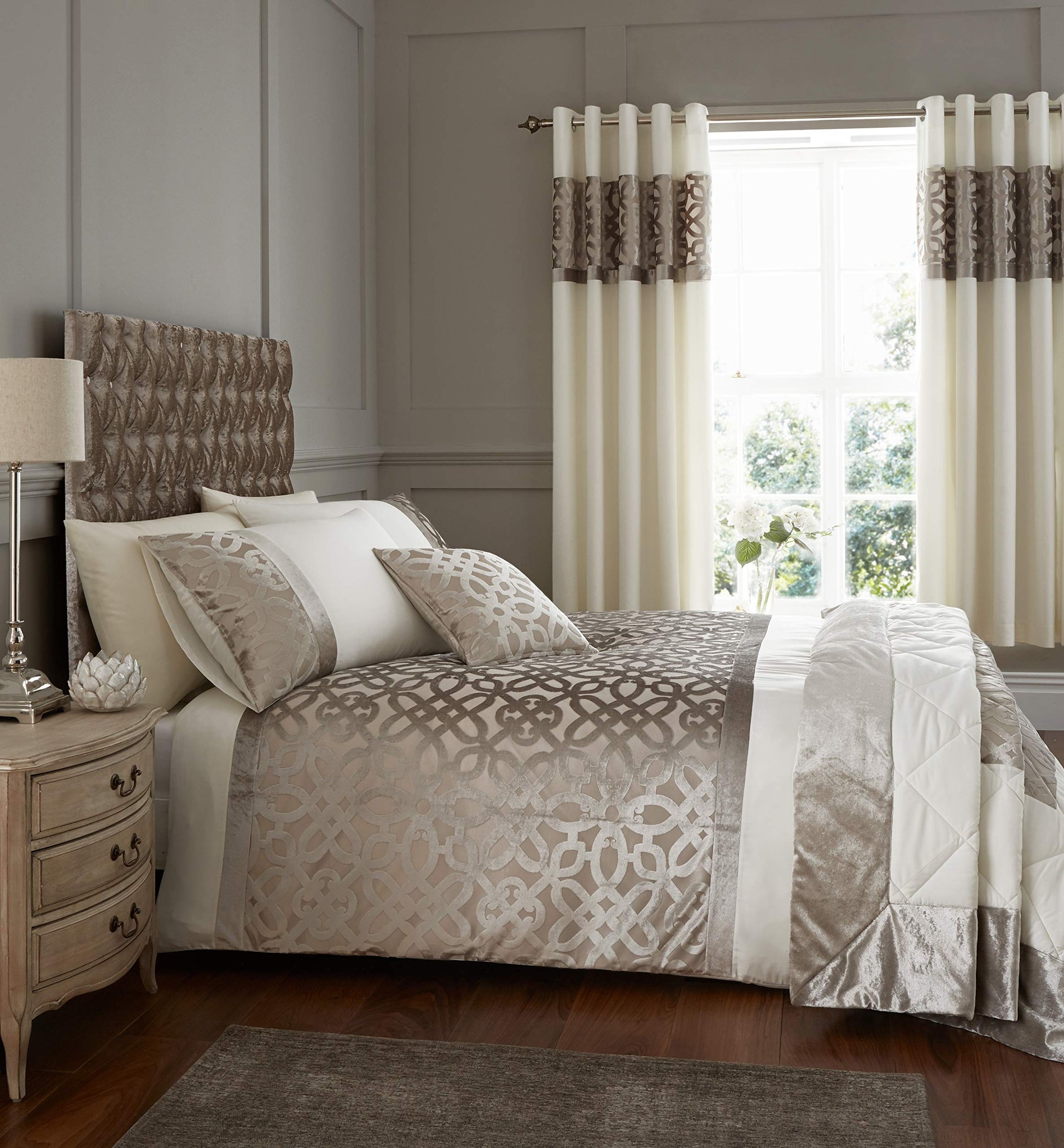 • Beautifully textural and soft touch the lattice detail on this devore velvet panel bedspread is perfect for creating a luxurious feel to your bedroom.