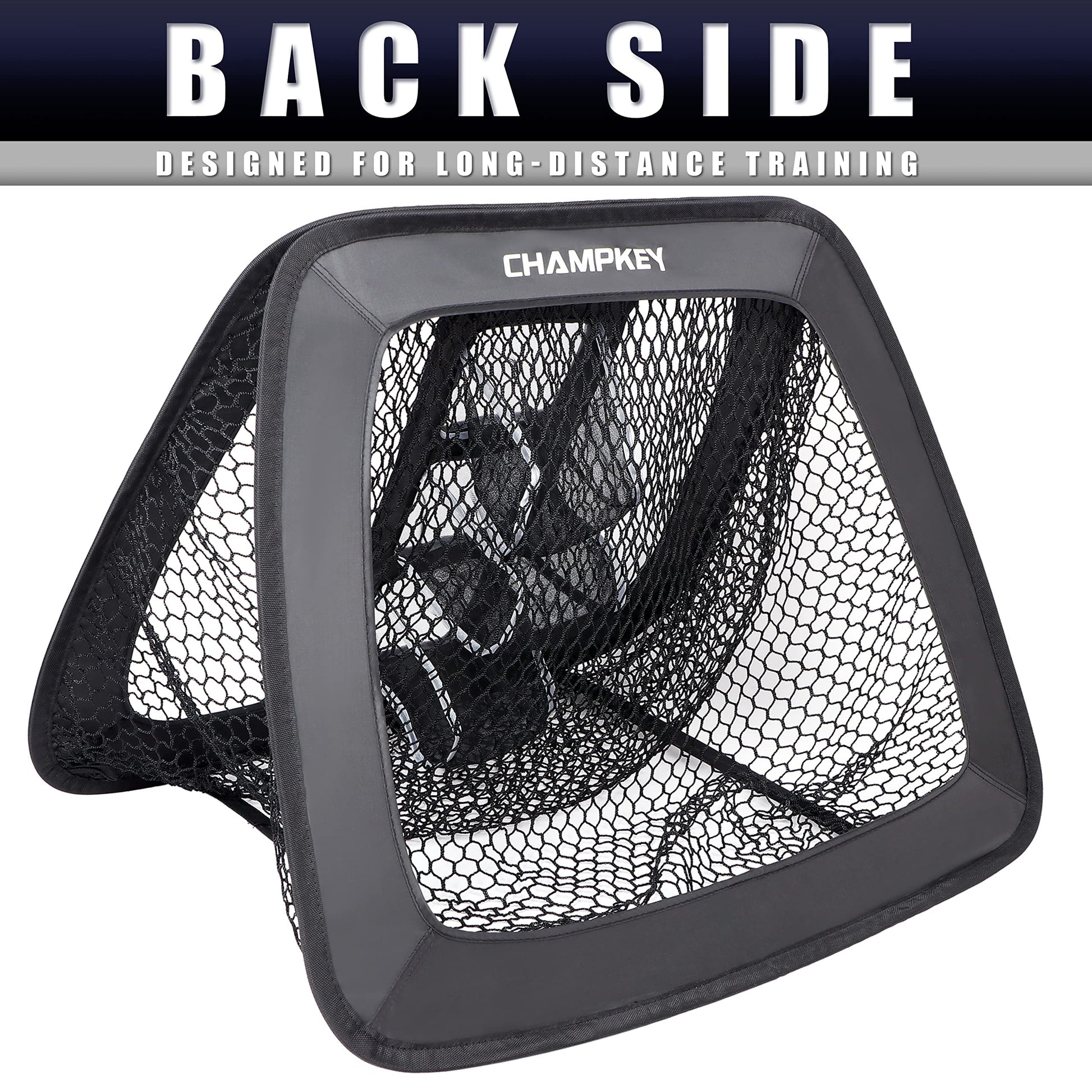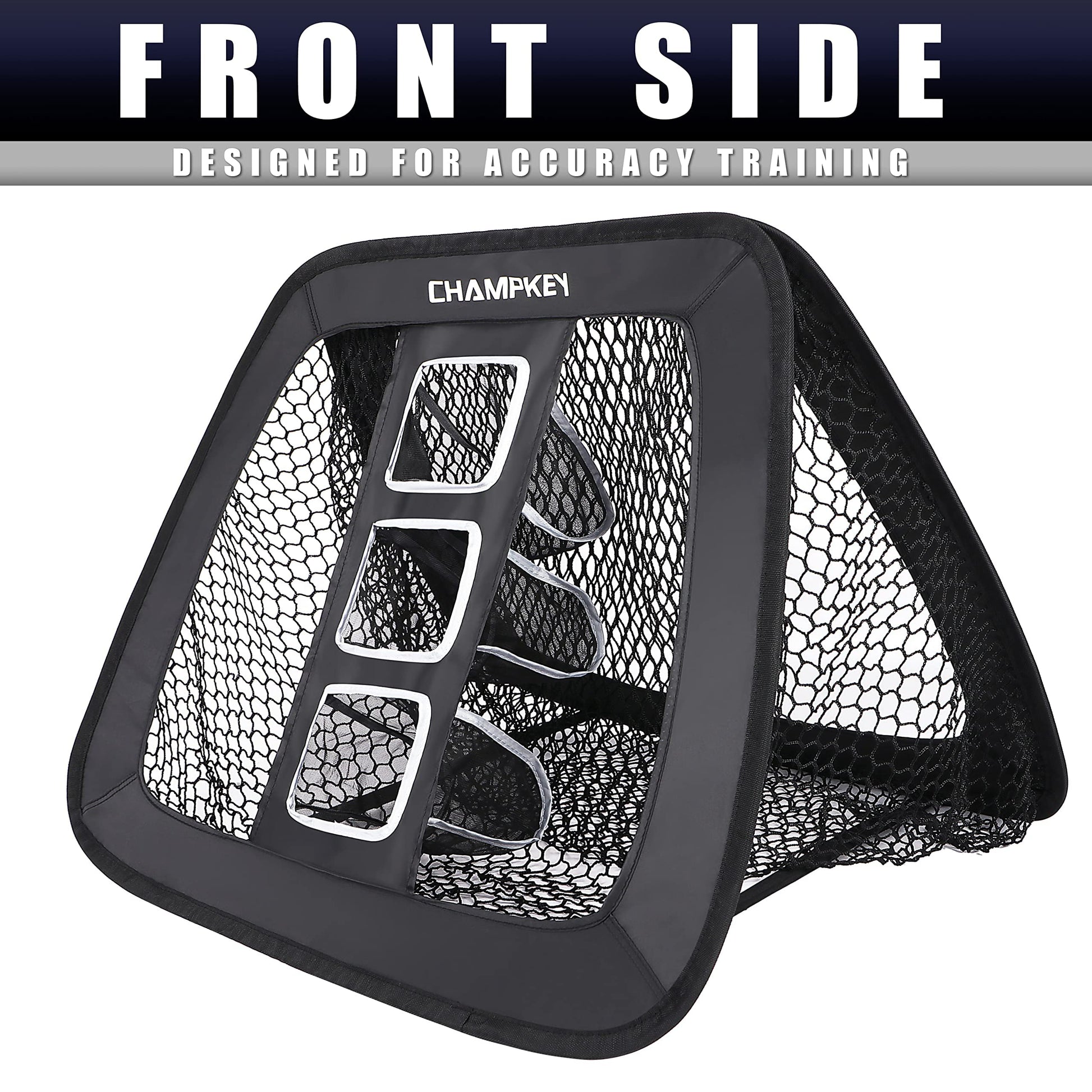 CHAMPKEY Double Sided Golf Chipping Net with Golf Hitting Mat | Come with 12 Foam Golf Balls | 5 Ply-Knotless Netting Chipping Net and Heavy Duty Rubber Backing Hitting Mat Ideal for Training