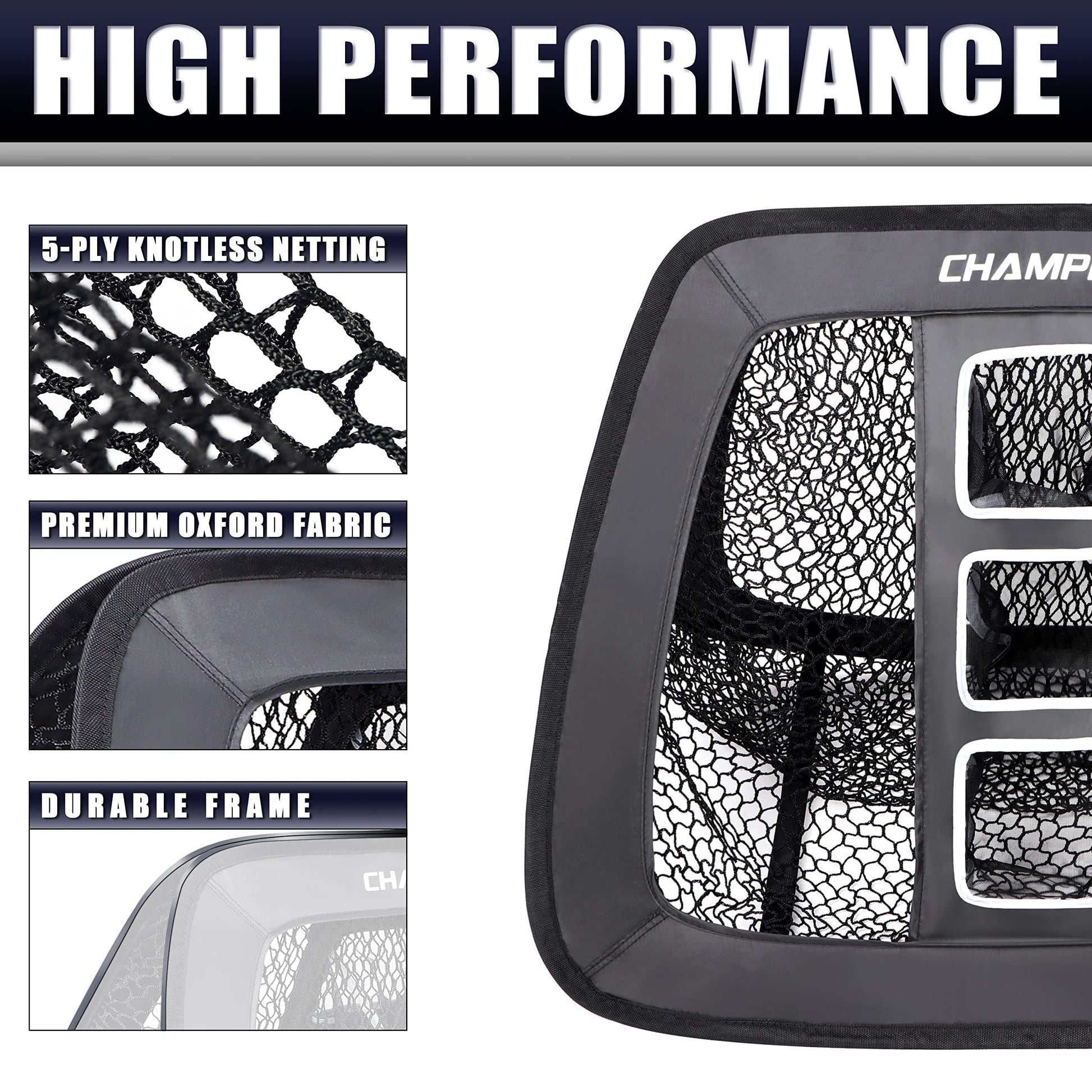 CHAMPKEY Double Sided Golf Chipping Net with Golf Hitting Mat | Come with 12 Foam Golf Balls | 5 Ply-Knotless Netting Chipping Net and Heavy Duty