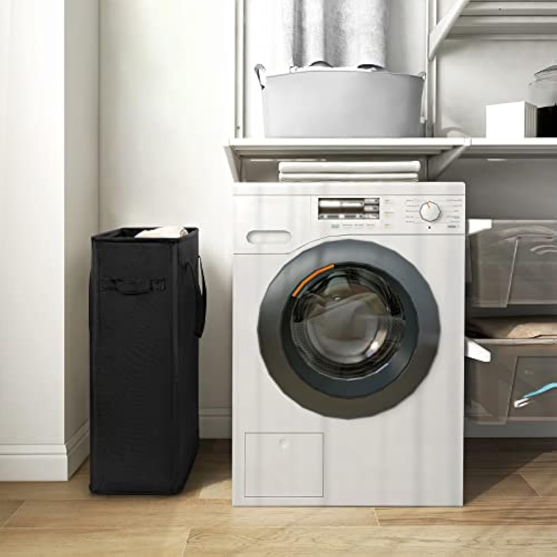 • SLIM SHAPE: The size is 15"X8"X21"(not include handles). Our laundry hampers are in slim shape so we suggest you can put light clothes on it. Suitable for small spaces between washing machines and dryers