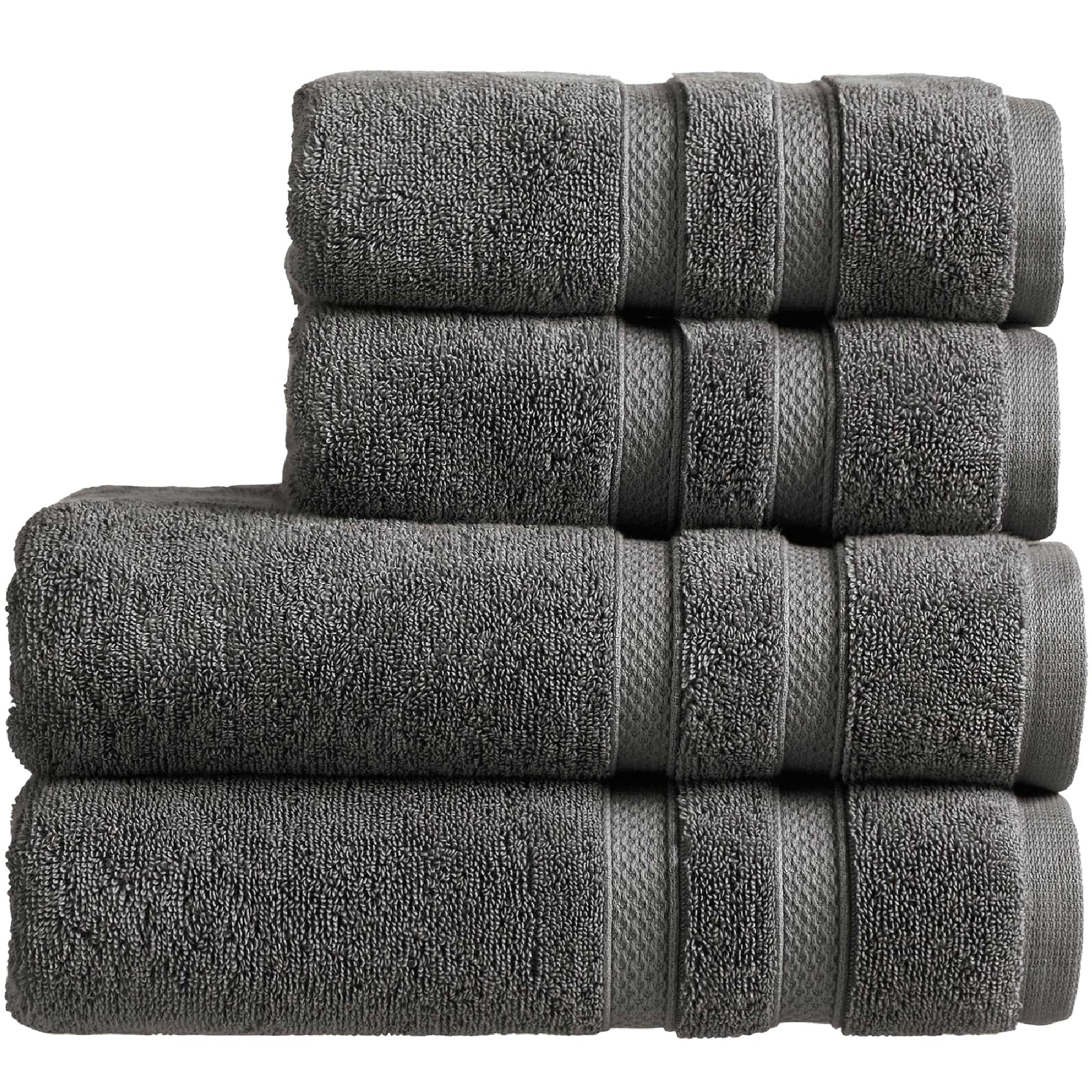 • HIGHLY ABSORBENT - these heavyweight towels are 675GSM (grams per square metre), which makes them highly absorbent. This 4 piece set contains 2 large bath towels (125cm x 70cm) and 2 hand towels (90cm x 50cm).