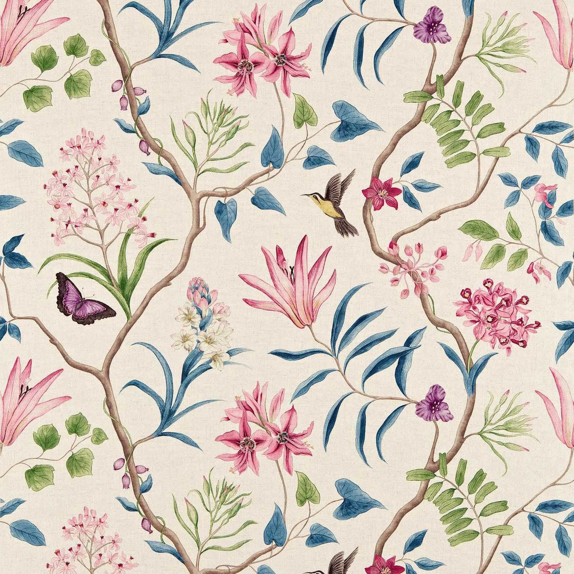 This beautifully painted tropical trail evokes the feeling of Amazonian jungles with hummingbirds and exotic flora. This fantastical version of a tree of life is also available as wallpaper.