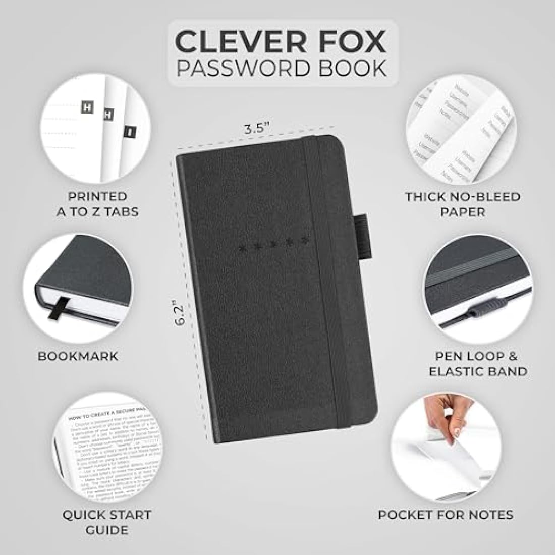 NEVER FORGET A PASSWORD AGAIN – Clever Fox Internet password book will help you create secure passwords and keep them safe and organized. This alphabetized password book helps you store your login details in one place and keep your user data extra safe.