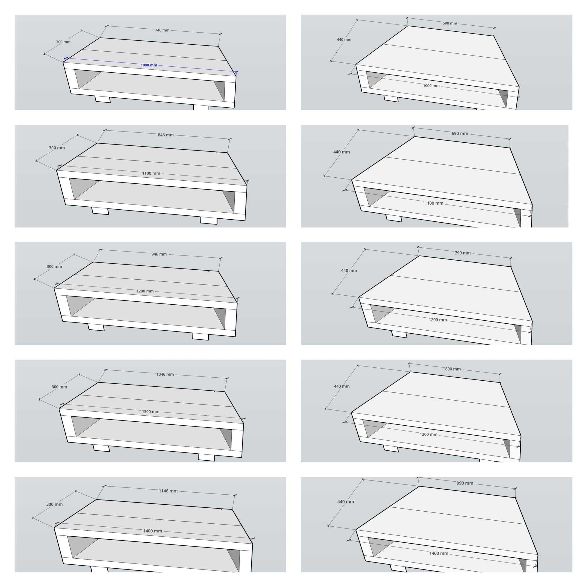 If you opt for the 44 cm deep version, the unit should be a minimum of 45 cm wider than your TV.