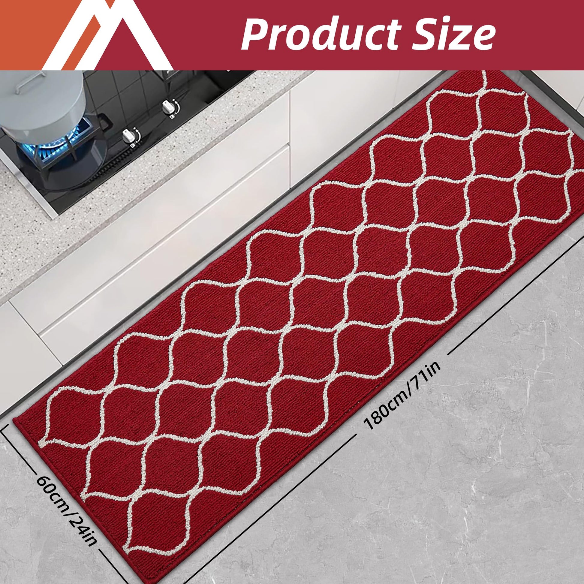 COSY HOMEER Kitchen Mat Rug, 60 x 180cm, Non-Slip Floor Mat Machine Washable Runner for Kitchen, Entryway, Laundry Room, Red