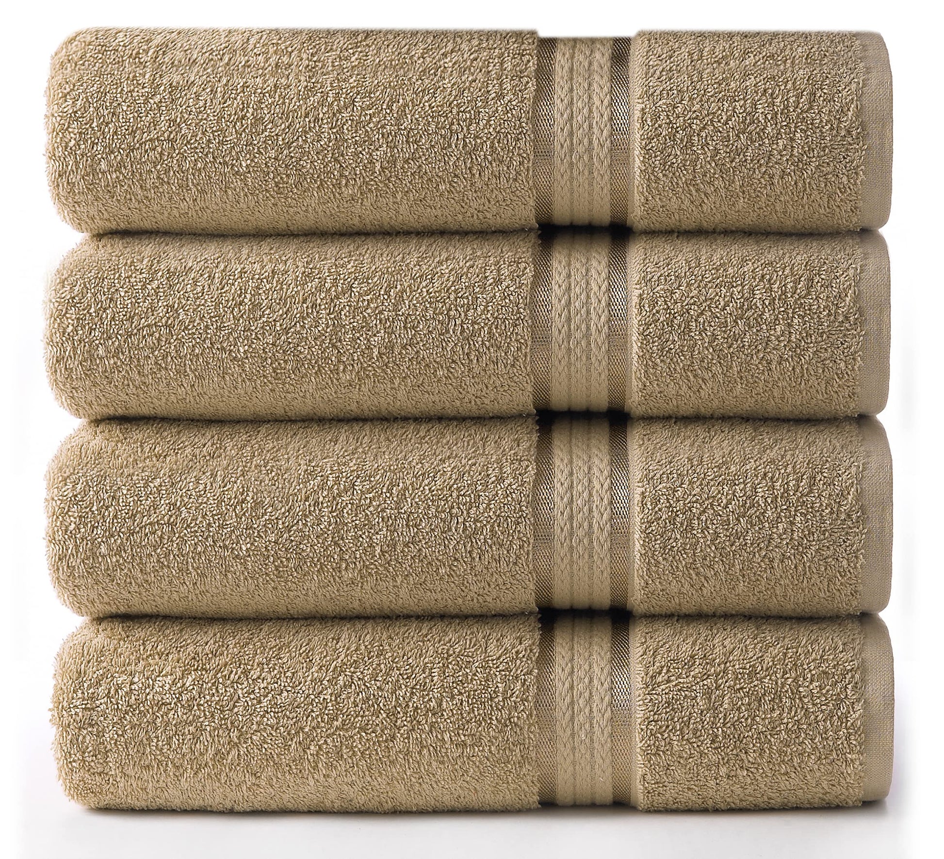 COTTON CRAFT -Ultra Soft 4 Pack Bath Towels -76x137 - Linen - 100% Pure Ringspun Cotton - Luxurious Rayon trim - Ideal for everyday use - Easy care