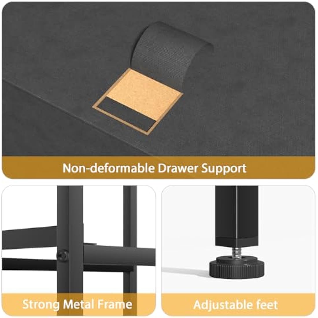 【Premium Materials】The drawer chest is made from high-quality non-woven fabric and carbon steel, ensuring a sturdy structure that is both waterproof and scratch-resistant.