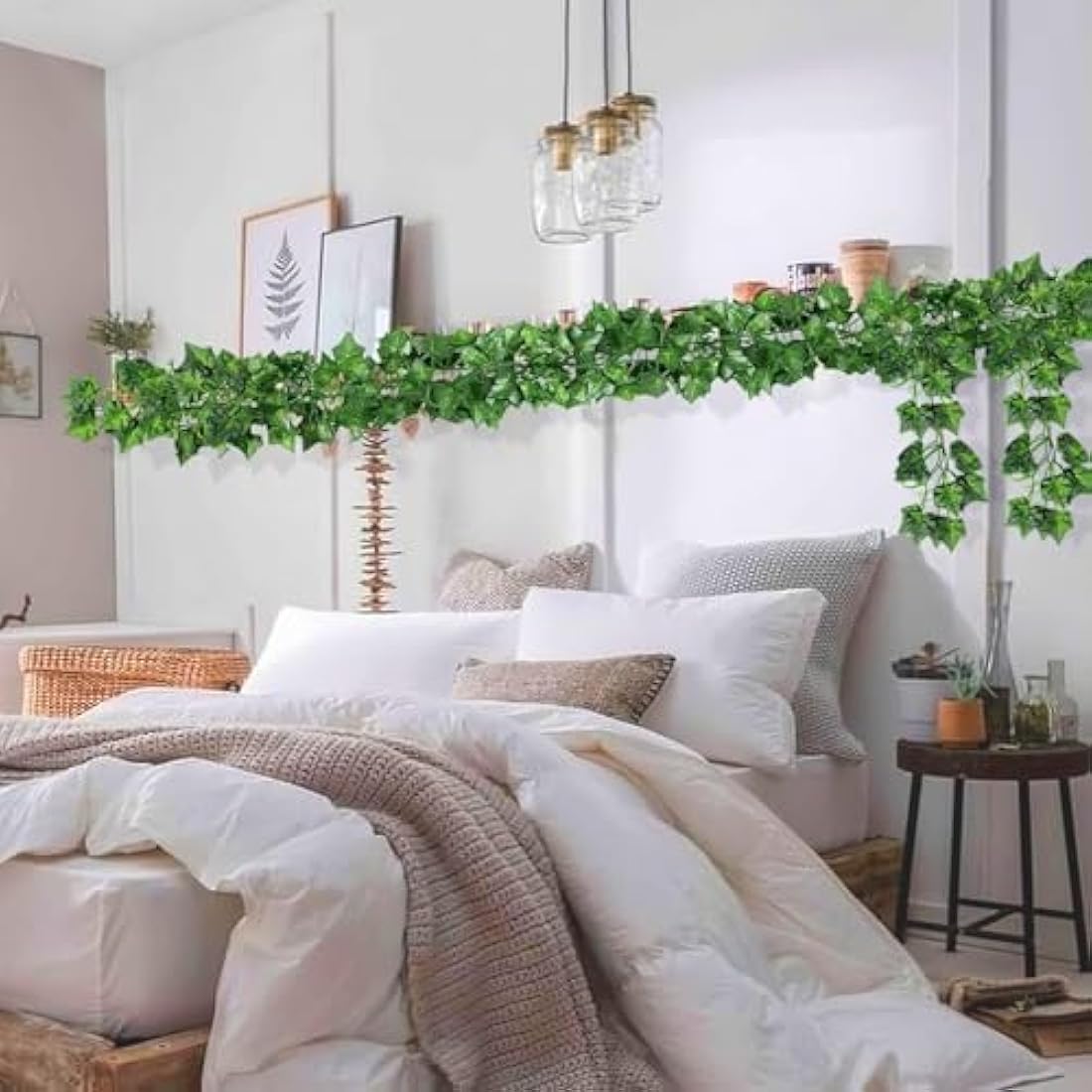 DURABLE and REUSABLE: Sturdy and texture clear ivy leaf are made of fabric, stems are made of plastic, It's soft, and easily bent or cut down as you need, and adapt to all kinds of weather。Hanging ivy garland does not require any sort of special care.