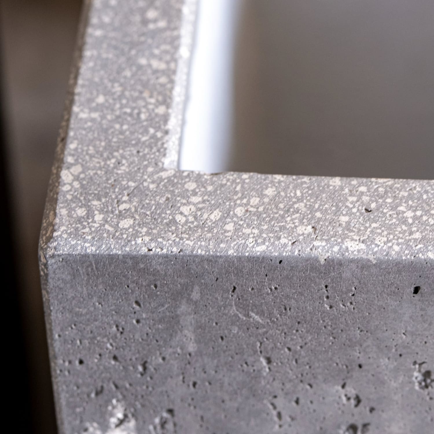 Premium pigmented concrete – colour is part of the material, so chips and scratches won’t reveal a different layer
