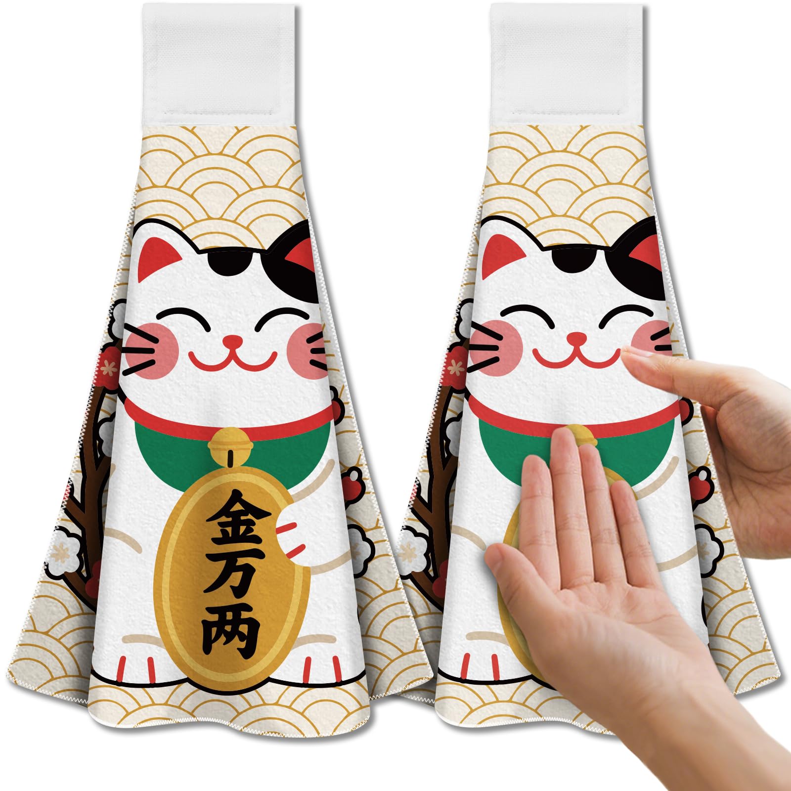 • ✨Attractive & Stylish Design: CUTHOLLOW hanging kitchen towels feature japanese lucky cat patterns that won't fade. Perfect for decorate to kitchens, bathrooms, oven handles or guest rooms