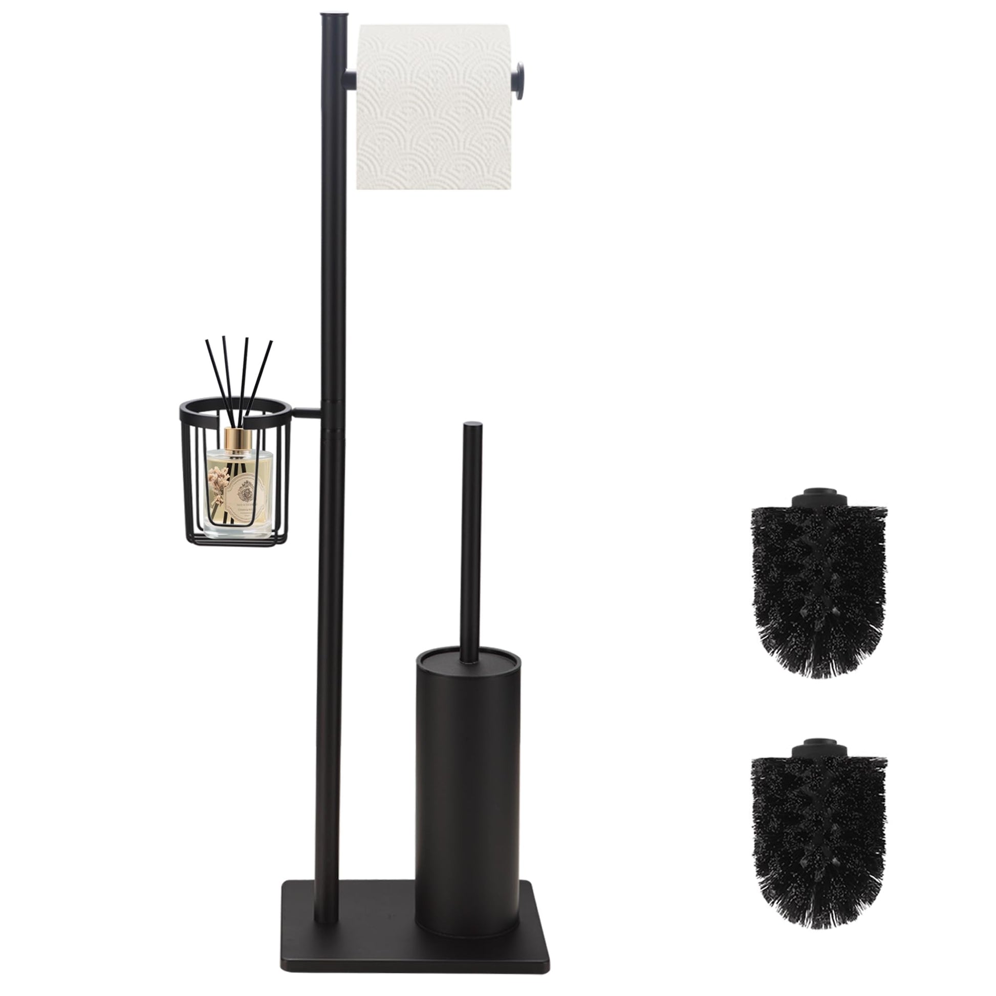 • Intelligent 3-in-1 design – Our elegant standing toilet paper holder combines a free-standing toilet paper holder, a toilet brush and a side storage basket in a single product. Ideal for anyone who values order, functionality and minimalist style in the bathroom – even in small spaces. Our toilet brush set is easy to assemble and disassemble without drilling or tools. All components are washable and designed for durability.