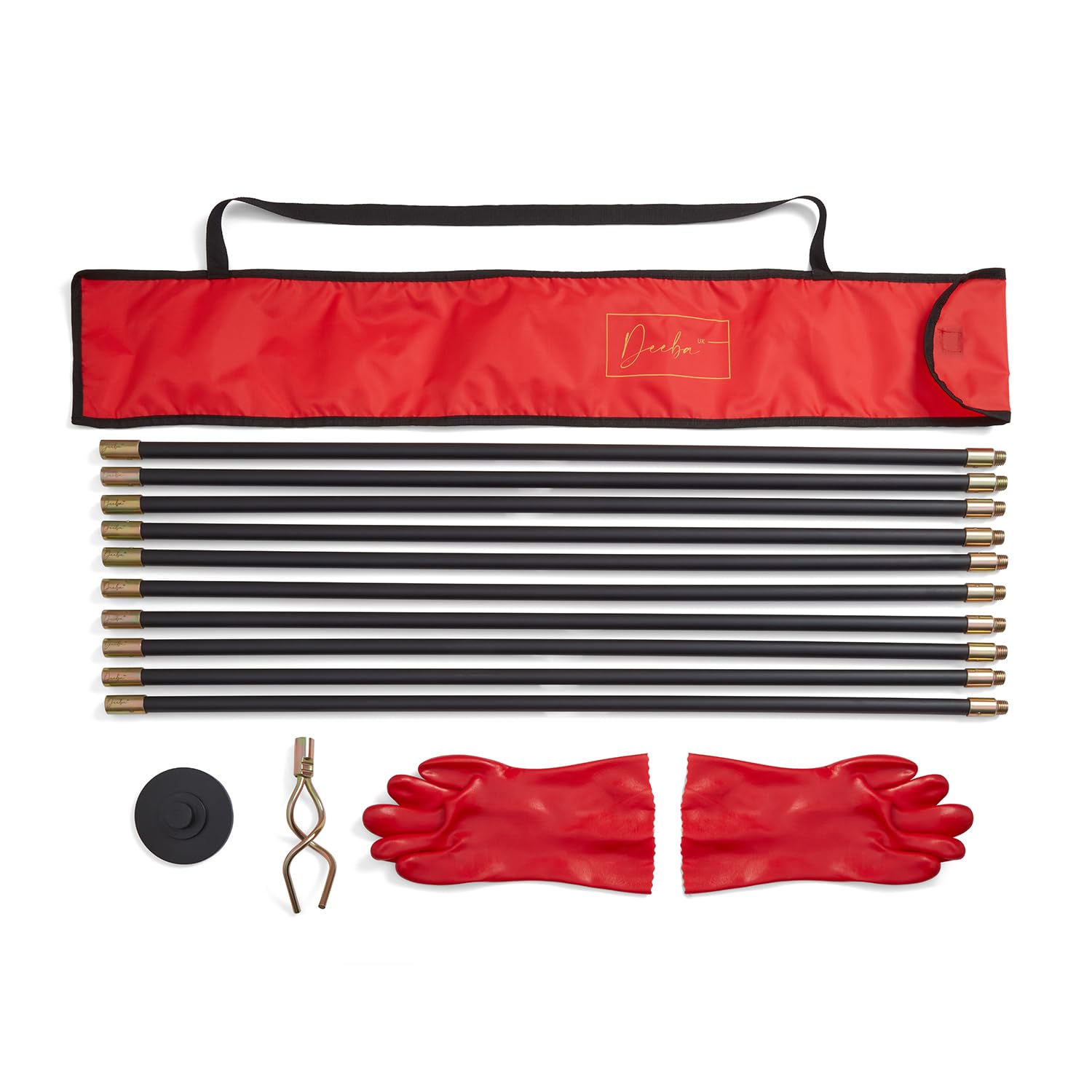 Deeba UK 10M Drain Rod Kit with Heavy Duty Gloves & Carry Bag - Professional Flexible Drain Cleaner for Blocked Drains, Sinks, Toilets - Heavy Duty Brass Fittings, Easy Assembly