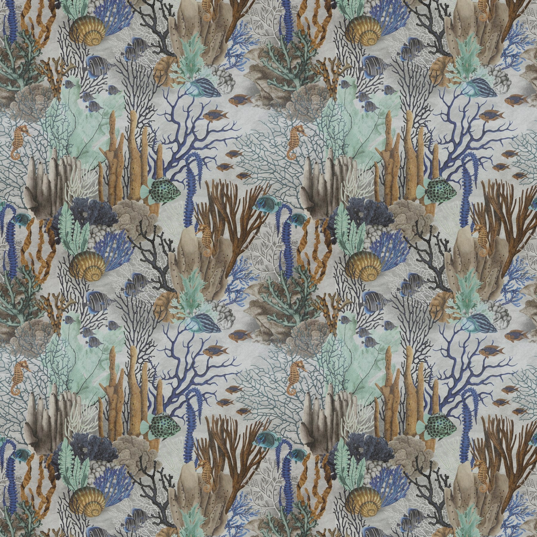 The Deep Reef wallpaper from JAB ANSTOETZ's Chivasso collection transforms your wall into a spectacular underwater world. This highly pigmented digital print features a breathtaking vista of tropical fish swimming among shimmering corals and rock formations.