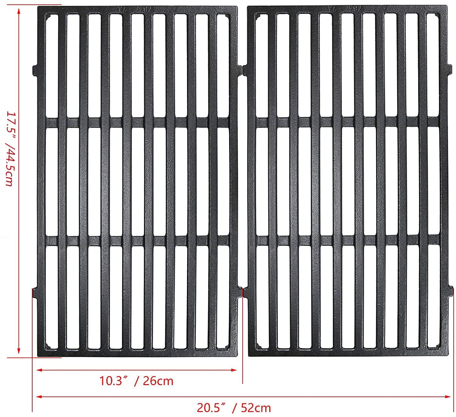 ã€Dimension】44.5 x 26cm for each grate, 44.5 x 52cm for total.ã€Package】Grates x 2,Installation instruction x1. ã€High-quality Materials】Made of strong and durable cast iron, with even heat distribution,the coating won't flakes off like similar grates on the market.
