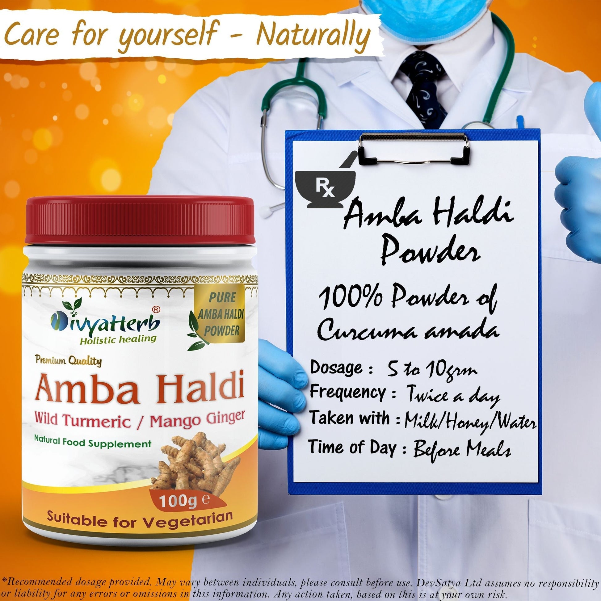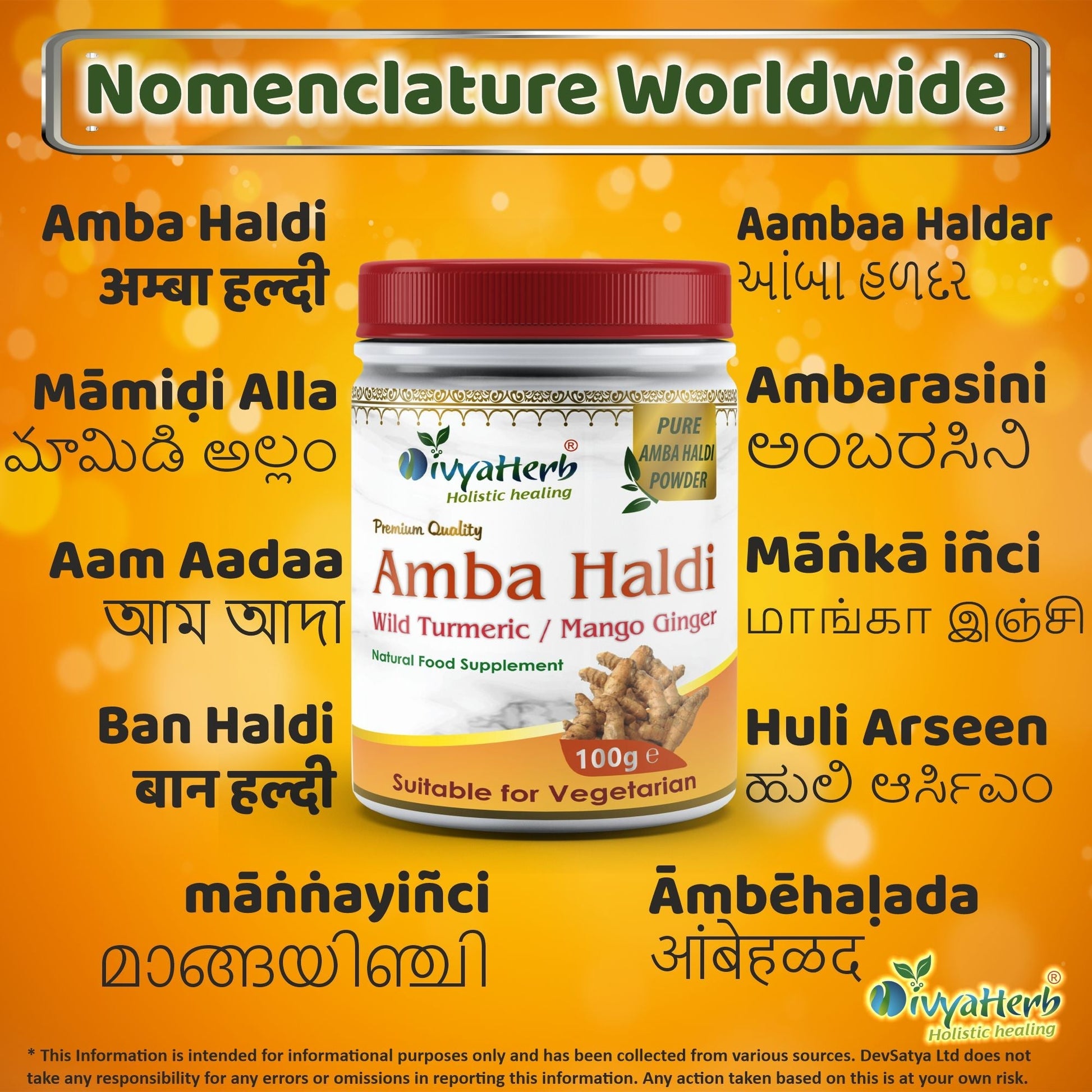 DivyaHerb Amba Haldi Powder 100 gram - Daily Wellness Support