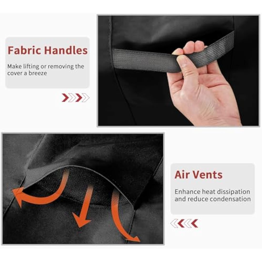 BREATHABLE AND NOT MOLDY - The air vents are designed to keep air flowing, reduce internal condensation, keep the inner cushion dry and mold-free. Fabric Handles make lifting or removing the cover a breeze