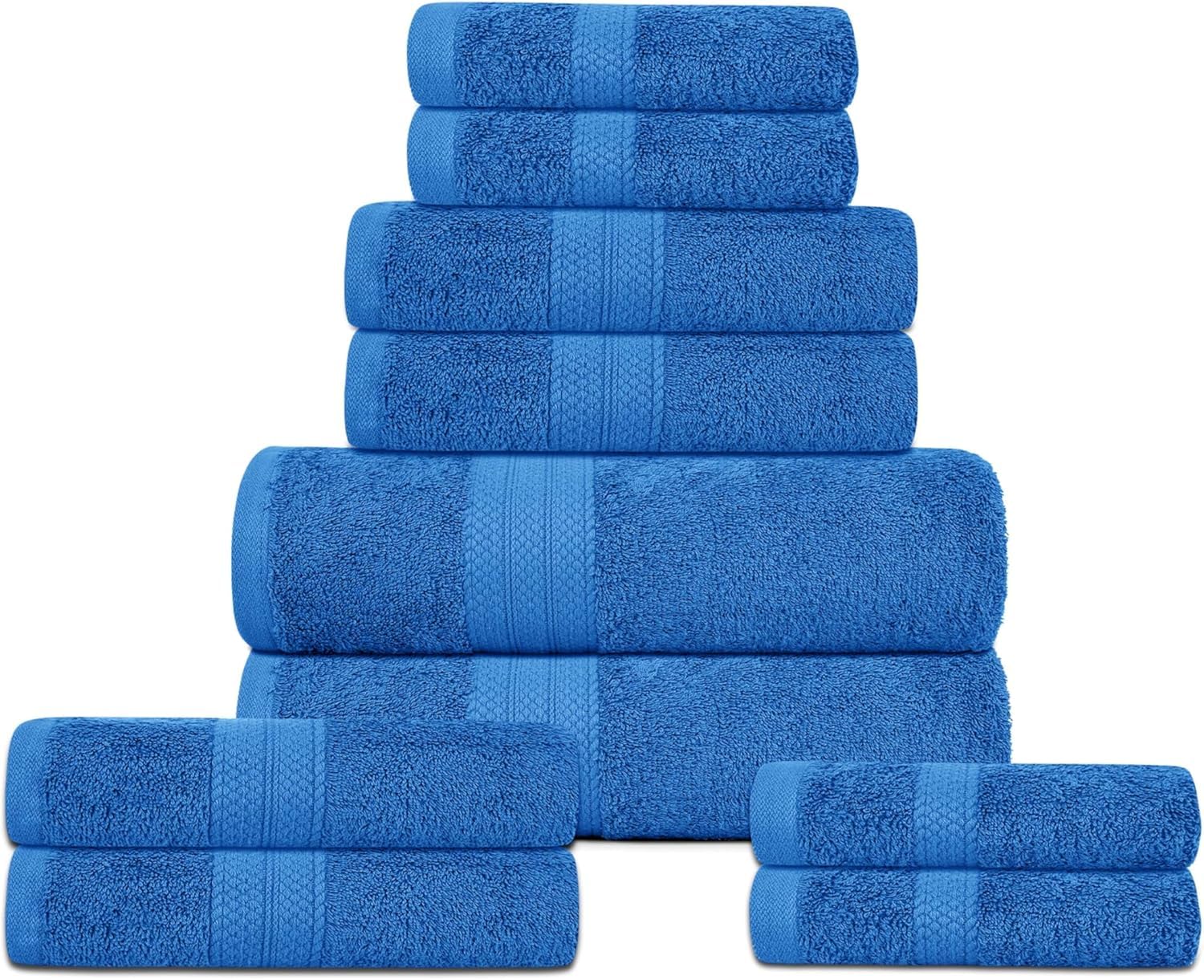 DreamNights Towels 12 Piece Bale Towel Set - 2 Bath Towels, 2 Mitt Gloves, 4 Hand Towels and 4 Washcloths 100% Cotton Hotel Quality Super Soft and Highly Absorbent (Blue)