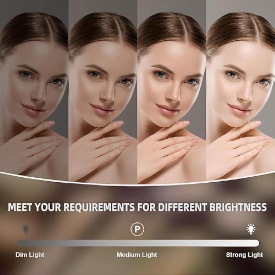 【3 Color Lighting Modes & Adjustable Brightness】 The Hollywood makeup mirror is surrounded by 14 LED bulbs , free to switch warm light, natural and cold light. It is no longer limited to the traditional fixed brightness, it can be individually adjusted to your comfortable brightness, suitable in any environment, you can get the most natural makeup effect even at night