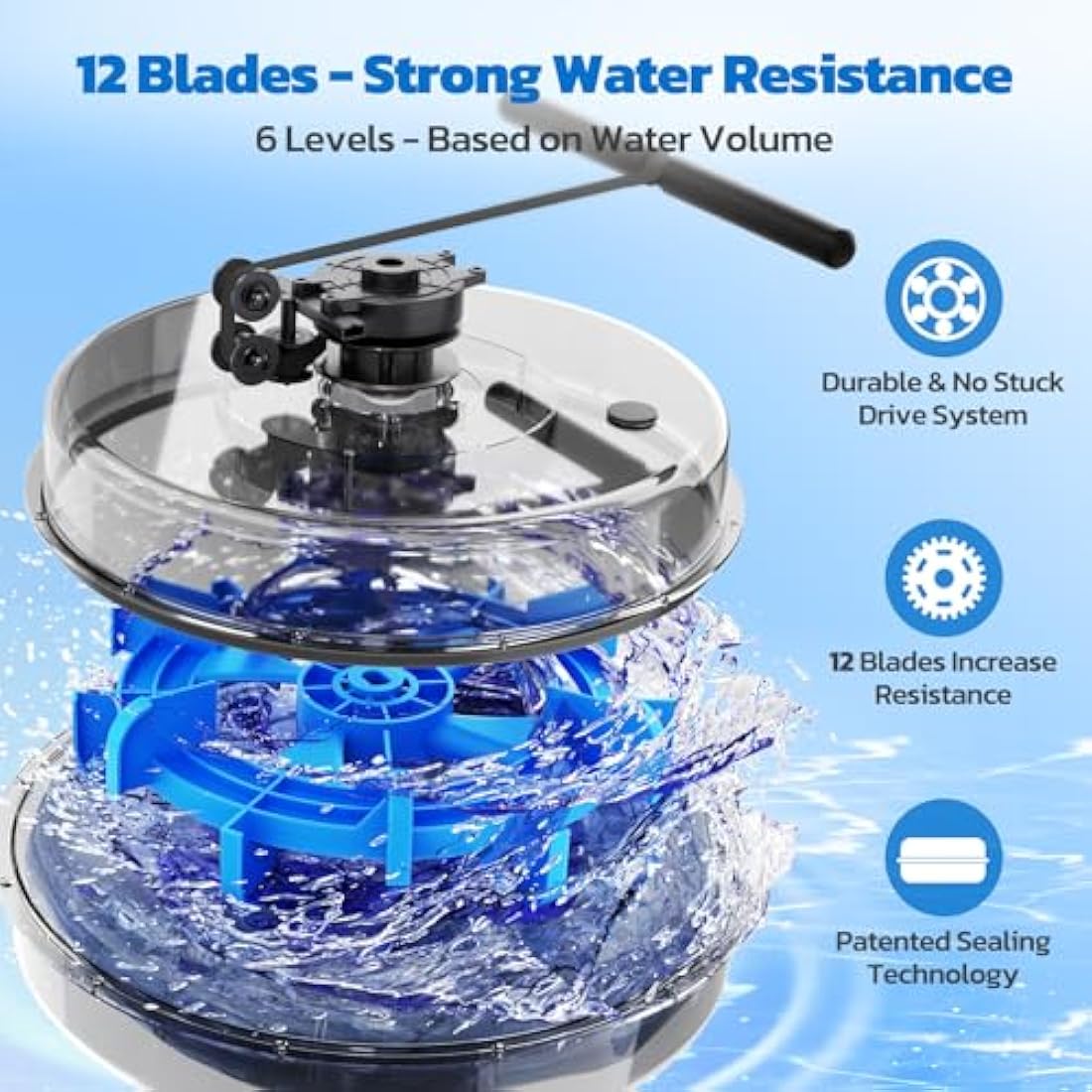 [12 Blades for 6 Levels Water Resistance]: Featuring a mutil-blade design in the water tank, it offers unparalleled resistance that intensifies with your effort. The resistance increases as the amount of water increases. With 6 adjustable water levels and the ability to customize the water volume, Easily fine-tune the resistance to match your fitness goals and desired intensity.
