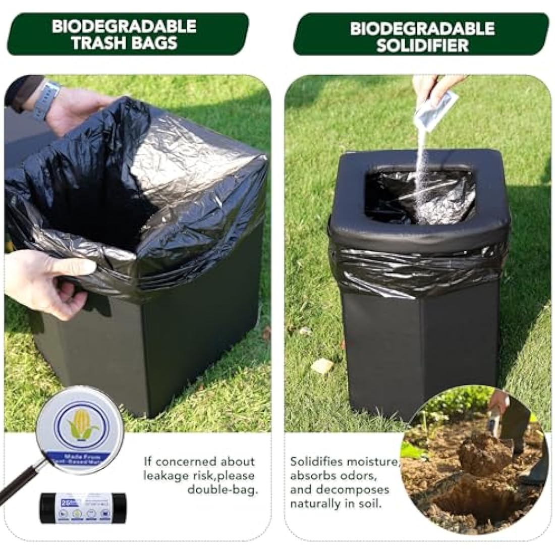【Easy to Clean and Use】The product comes with environmentally friendly degradable garbage bags, with large-sized garbage bags that can effectively hold the generated waste. The toilet surface is dirt and water repellent, can be easily wiped clean. In addition to being used for toilets, it can also be used for stools, storage boxes, vomit bins, trash cans, and various other purposes.