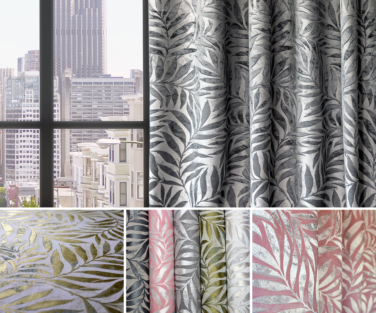 Ella is a metallic woven jaquard with a leaf trellis design. Available in 5 colours