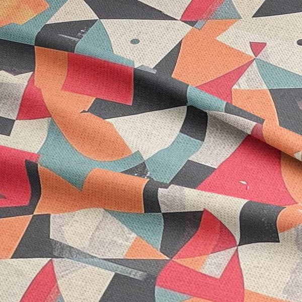A playful composition of layered forms and softened geometry, Exhibite No.11 Upholstery Fabric captures the spirit of abstract expressionism with an undeniably contemporary edge. Warm coral, muted teal, sand, and charcoal tones interplay across bold cut-outs and fractured linework, offering a sense of motion and rhythm across any upholstered piece.