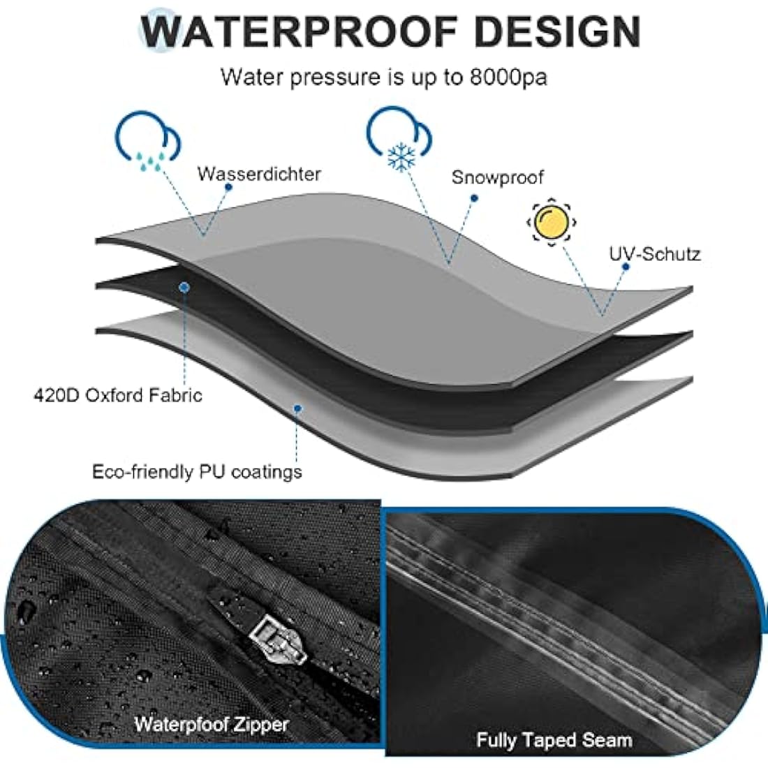 UPGRADED WATERPROOF: The double egg chair covers waterproof is coated with PU coating on the back and sturdy waterproof zipper, after repeated testing by the factory, the water pressure is up to 8000mmH2O; and Ezilif Garden hanging egg chair cover adopts fully taped seam, completely covering all of the holes left by the sewing needle, then water will not seep through in rainy or wet weather, which is double enhance the egg chair cover waterproof