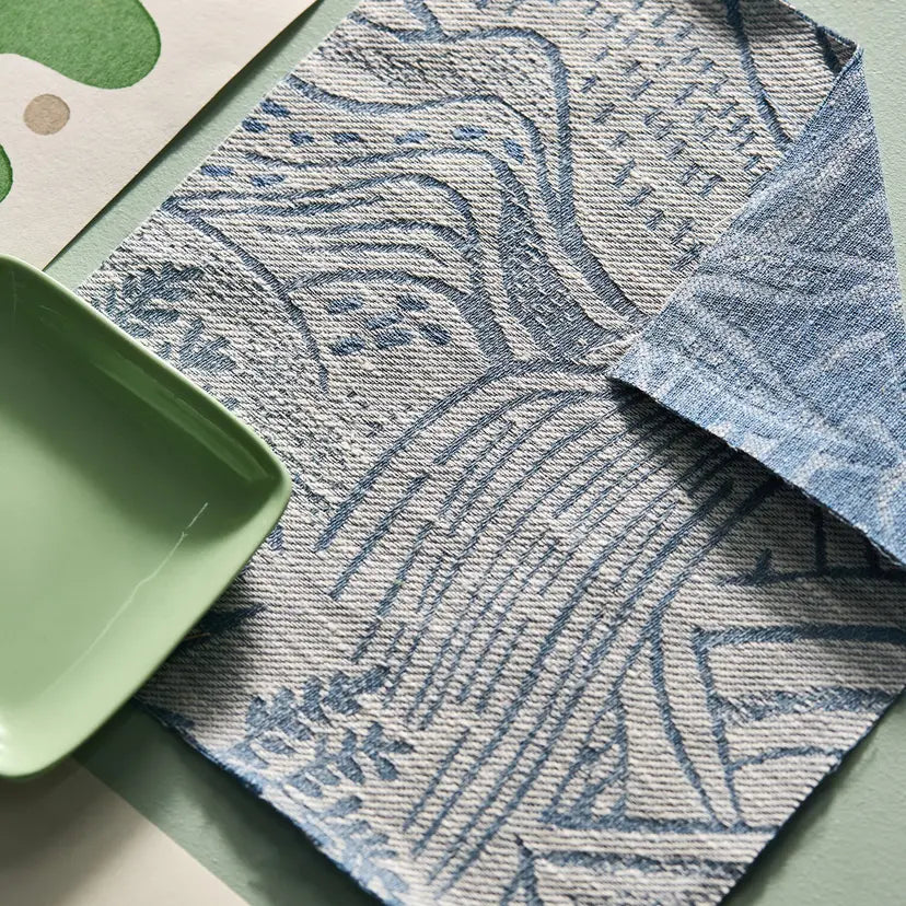 Falling Foss tells a story of slow and easy walks through waterfalls and over gently undulating hills and riverbanks. The design offers something familiar for everyone to find. Trees, rocks, streams, and brooks come together in harmony. A smaller scale to the wallpaper, Falling Foss has been produced as a jacquard with flecks of colour, adding appeal and texture to the weave, creating a soothing finish.