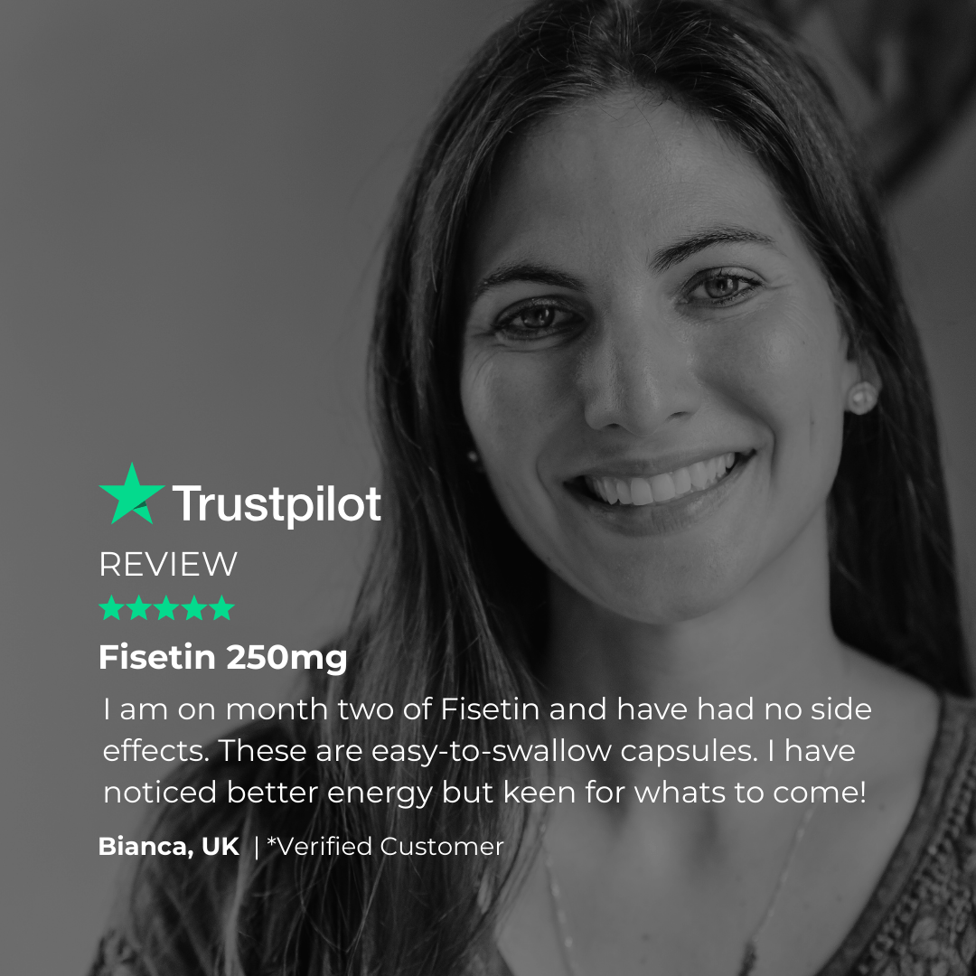 High Potency Each capsule contains 250mg of pure fisetin — a level used in many leading anti-ageing research trials.