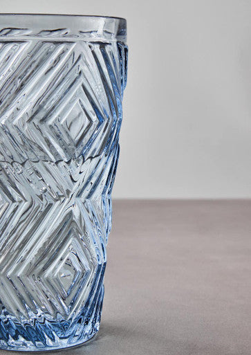 Each highball showcases a luminous blue tone that plays beautifully with light. Diamond embossing wraps the surface to create depth and sparkle across the glass. The pattern adds a confident grip while keeping the profile clean and versatile.