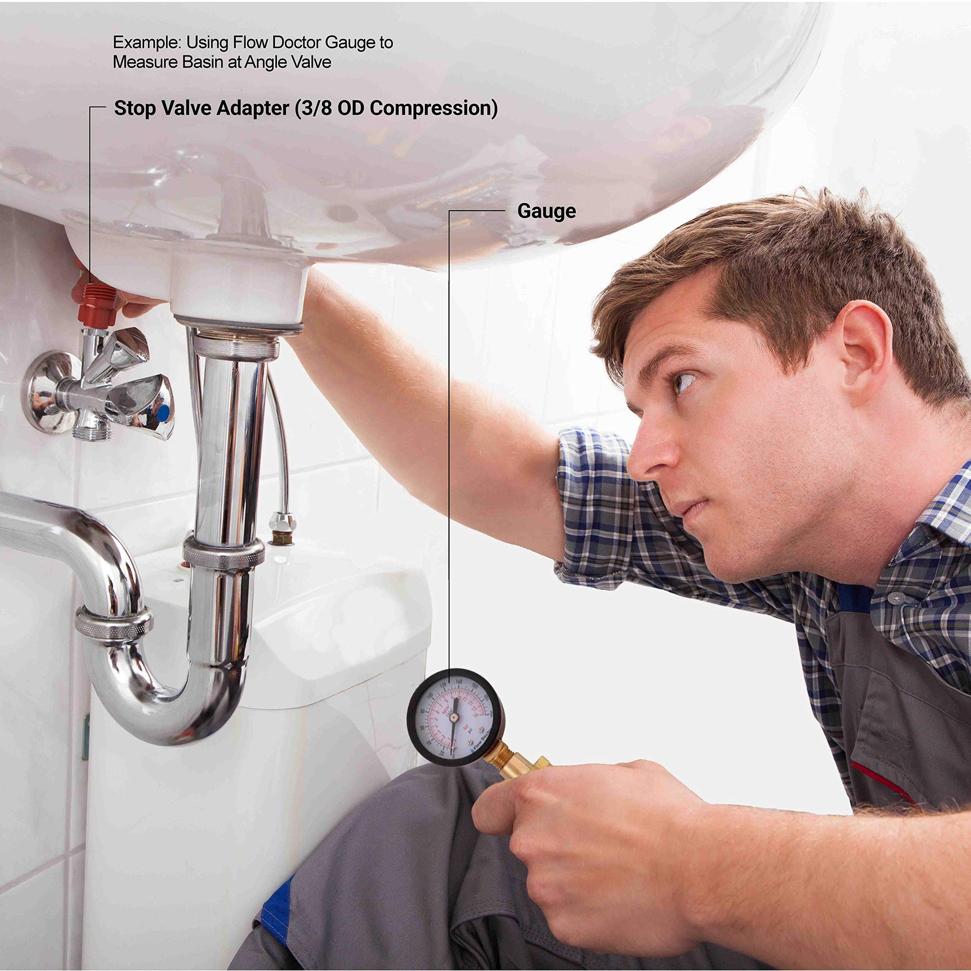 SPECIAL ALL PURPOSE 1/2" STANDARD PIPE ADAPTER for testing threaded HOUSE, BUILDING, SHOWER, WATER TANK, HOT WATER HEATER, PUMP, BOOSTER, WELL, BOILER, RV WATER, WATERER, SPRINKLER IRRIGATION SYSTEM or BATHTUB, piping outlets and supply lines. Use any 1/2" Nipple and a Standard Hose Connector to measure at SINKS, TOILETS, BASINS, DISHWASHERS and ANGLE VALVES.