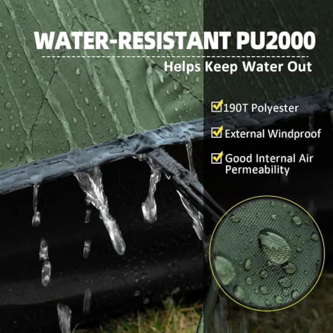 【Waterproof & Durable】 This camping tent features a rainfly with a PU 2000mm coating and 210D Oxford fabric groundsheet, and precision-sealed seams to eliminate the possibility of water infiltration. This dome tent ensures a dry and comfortable environment in all seasons and various weather conditions! This outstanding waterproof tent is the ideal choice for outdoor adventures and camping activities!