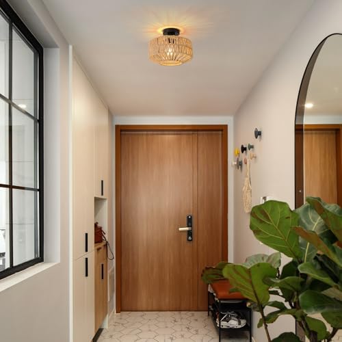 【Easy Installation & Firmly Attached to Ceiling】The overall structure of the wicker light fitting is very simple, including all mounting hardware for quick and easy installation. You only need to fix the lamp base and the lampshade together, then wire the ceiling light fixtures flush mount to the home circuit, and install the light bulb. Only few minutes to get a perfect vintage ceiling lamp. The open bottom makes this rustic light fixture easy to be cleaned and replaced bulbs for different feelings. (Bulb not included)