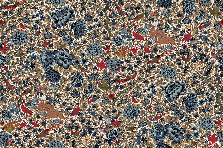 ARCHIVE is a classic collection of unmistakably vintage prints. Carefully curated and coloured to harmonise design and texture once printed on to our beautiful House Velvet. Larger, bolder scaled designs offer real Impact and make the statement, whilst the smaller scaled coordinates offer the bridge between the simplistic and the brave. The velvet has a wool barrier fabric fused into its indices which not only gives the fabric a really substantial handle but also means it is suitable for Upholstery. This clever, dual purpose flexibility is made possible because the wool content creates a flame retardant barrier negating the need for stiff, chemical-based treatments. Flexible, luxurious, robust, and opulent. Everything you have come to expect from Art of the Loom, in such a beautiful package.