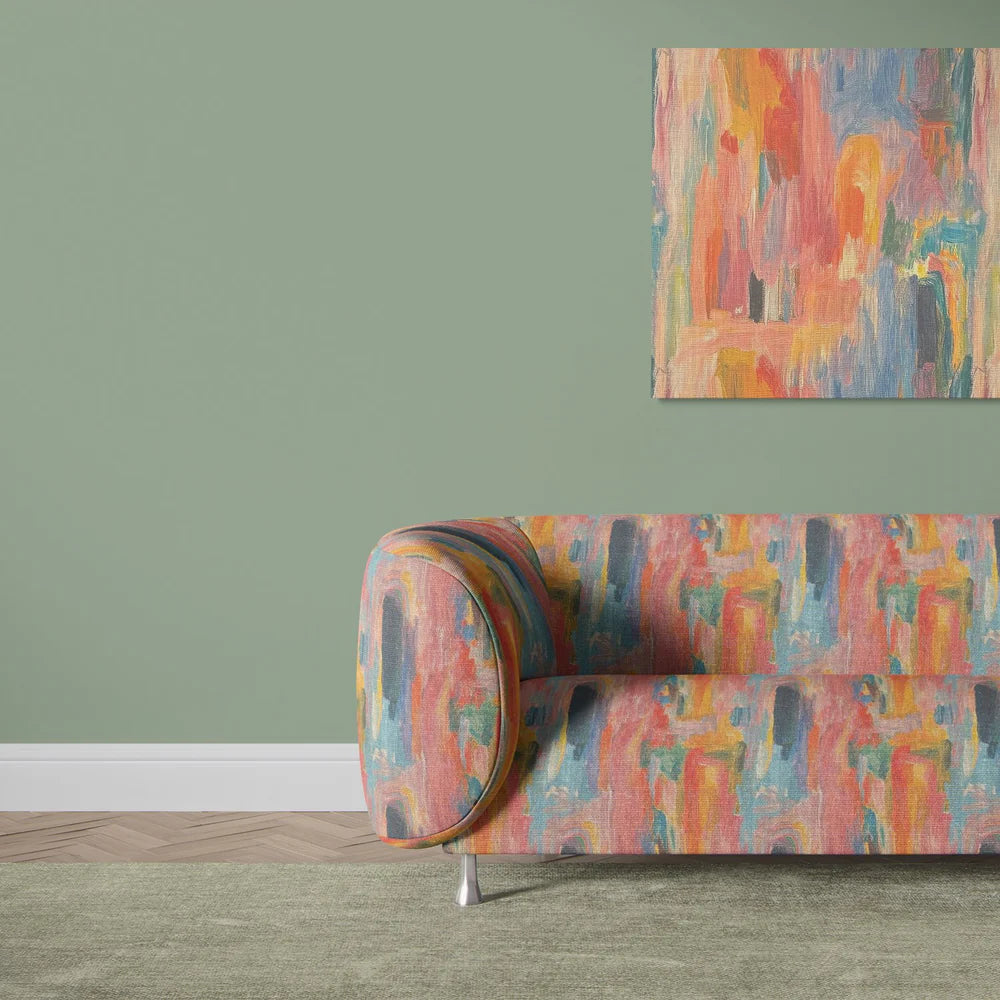 Immerse your interiors in a painterly expression of movement and emotion with Fresco No.17. Bursting with vivid brushstrokes of coral, denim blue, ochre, blush pink, and forest green, this upholstery fabric feels as though it’s been lifted from an artist’s easel. The design blends layered colour washes with gestural brushwork, creating a dynamic visual rhythm that feels both spontaneous and deliberate.