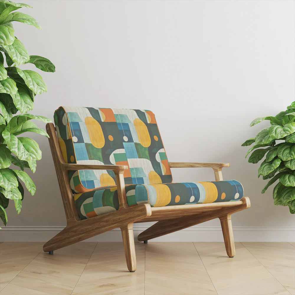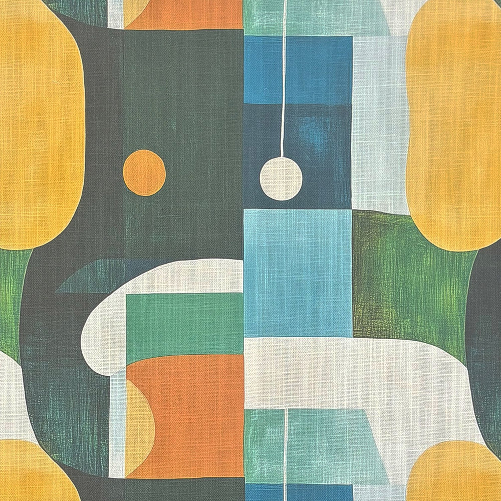 Bold and brilliantly composed, Fresco No.5 Upholstery Fabric is a celebration of colour, contrast, and painterly abstraction. Oversized abstract forms in ochre, forest green, deep teal, tangerine, and sky blue interlock across a crisp cream backdrop—reminiscent of colour blocking in mid-century art and the textured layering of modernist screenprints. This is a fabric that demands to be seen, ideal for elevating statement chairs, bold blinds, or oversized ottomans.