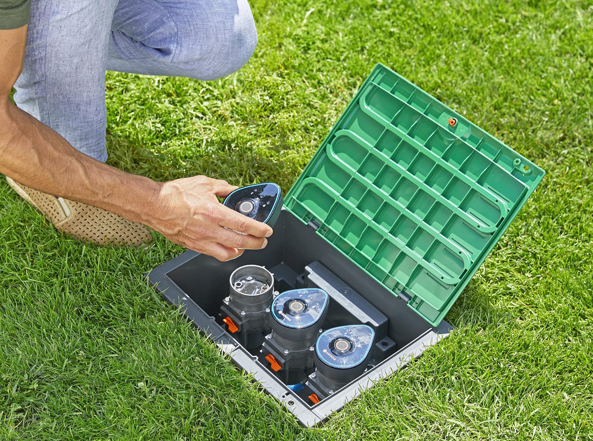 • Cable-free control system: The control of irrigation is cable-free and thus requires no power connection