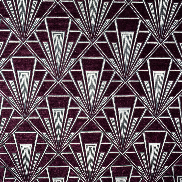 Gatsby is a geometric, art deco chenille suitable for curtains, accessories and upholstery. Available in 21 colours