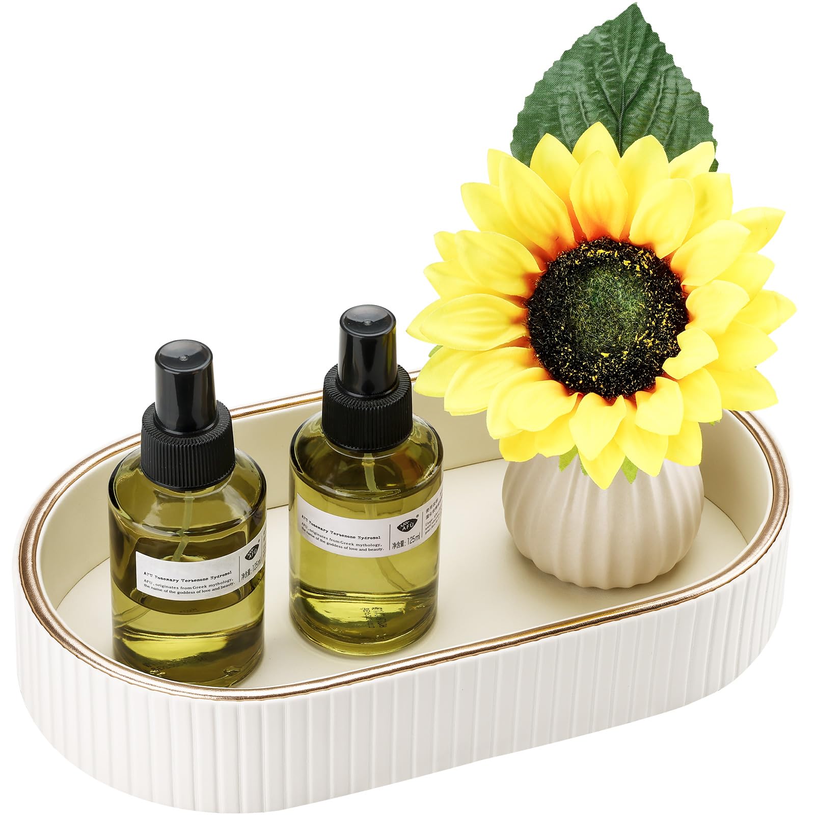 GORESE Bathroom Tray, Leather Oval Decorative Tray Bath Decor Jewelry Tray Vanity Tray Valet Tray Table Tray for Bathroom,Dressing Table,Soap Dispenser,Toilet,Bathtub,Candles,Kitchen Sink(Ivory White)