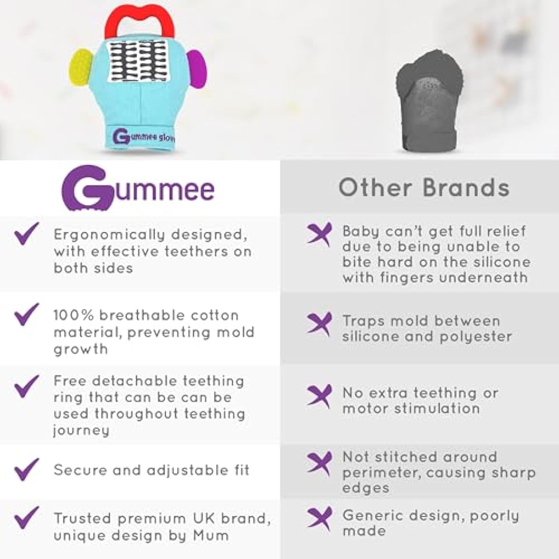 AWARD WINNING TEETHING MITTEN BY A UK MUM - The Gummee Glove is the original teething mitten designed specifically for babies. Inspired by my own child's constant chewing on hands without the ability to grasp a teether, I created the Gummee Glove. The teething glove offers babies a safe and soothing teething solution, with its teething mitten design and heart ring toy attachment. This is a perfect baby gift and teething essential for 3 month old babies. Meets all safety standards!