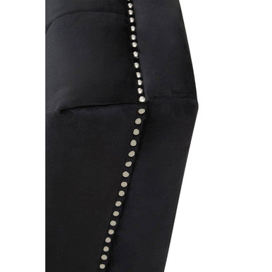 The tapered design of this three-seat sofa will create a visual statement. Expertly upholstered in sumptuous black velvet, silver stud detail and stitch design on the back adds depth to the sofa, while the chromed oblique metal legs will ensure support with style.