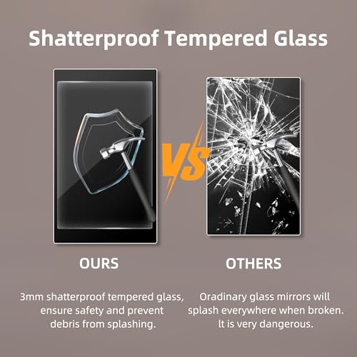 • HD & Explosion-proof material: This vanity mirror with lights is built with tempered glass which different from common mirrors, it features shatter-proof, burst-proof, much safer to use. This means that if the mirror ieven impacted by an external force, it will not be broken. It can protect your family to a greater extent.