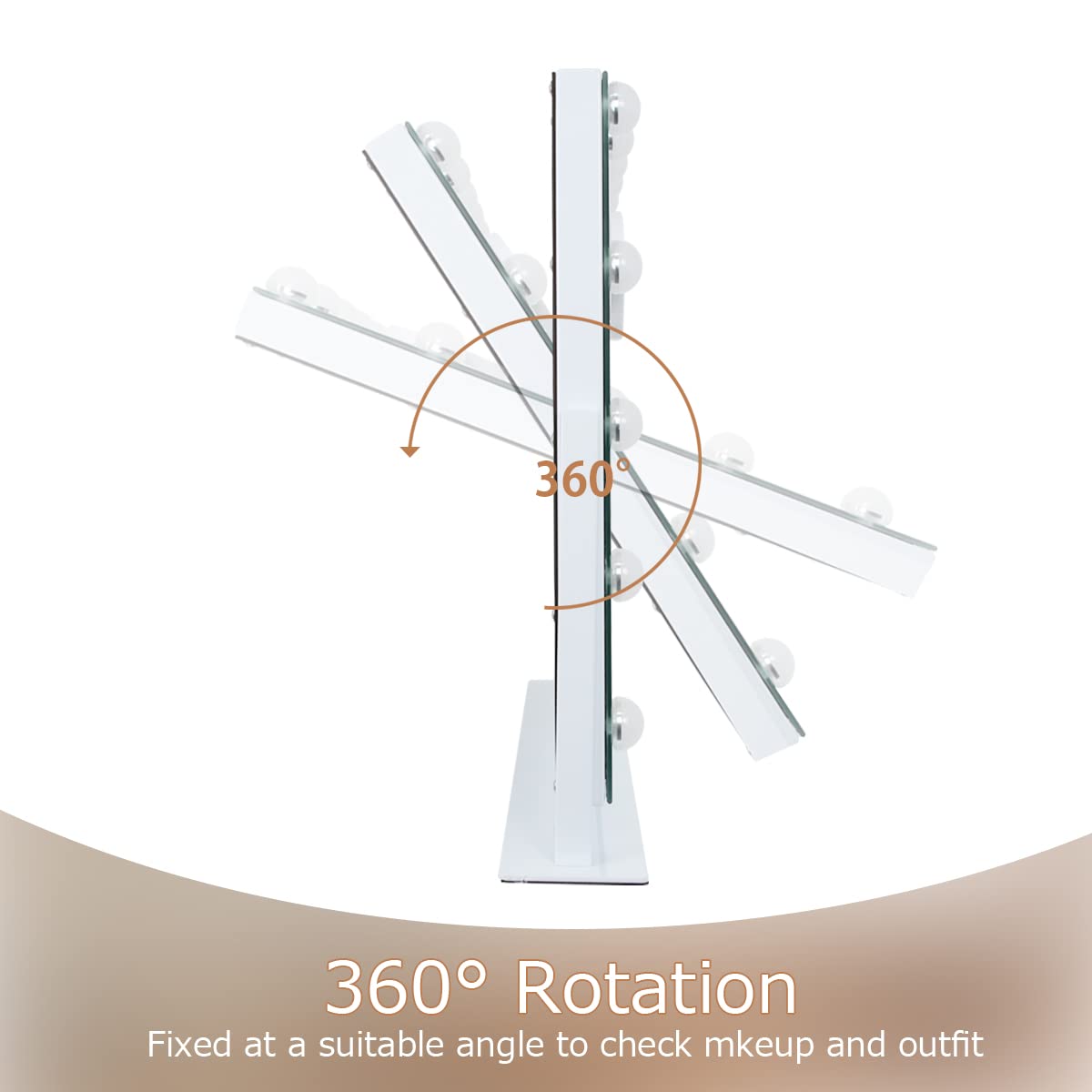 • 【360 Degree Rotation】 Unlike a large vanity mirror with lights, this makeup mirror for dressing table can be rotated 360 degrees to better check your makeup and outfits without bending over
